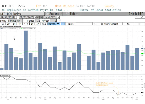 Bir başka önemli gelişme Amerikan Ticaret Bakanlığından gelen açıklamaydı. Ticaret Bakanlığı tespitine göre Çin’de üretim yapan Amerikan şirketlerinin yüzde 25’i 2020 cirolarında en az yüzde 16 düşüş bekliyorlar. Çin’de yaşanan virüs salgının Amerikan ekonomisi üzerindeki etkisinin limitli olacağı gerçek olabilir ama hiç etkisi olmayacak demek yanlış. Başkan Trump Çin Lideri ile yaptığı görüşmede ilk faz anlaşma şartlarının yerine getirilmesi konusunda sorun olmadığını ve Çin’in taahhütleri yerine getireceğini söyledi. Buna rağmen 10 Şubat’ta yeni yıl tatilinden dönüş olacak ve ekonominin çarkları yeniden dönmeye başlayacak mı? Konusu şüpheli iken Çin nasıl hızlı bir şekilde Amerika’dan ithalatını artıracak? Yatırım bankaları beklentisi Çin’in emtia talebinin 2020 ikinci çeyrek itibari ile yükselişe geçeceği yönünde, zamanı var. Bu sebeple hisse senedi piyasalarındaki iyimserliğe karşı emtia piyasasının Çin ithalat rakamlarına hassasiyet ile temkinli olduğunu ve yükselişlerin limitli kaldığını söyleyebiliriz.