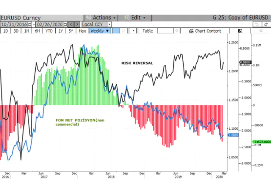 Göze çarpan bir başka fiyatlamadan daha bahsetmek gerekiyor. 20 Şubat tarihinde en yüksek 99.81 gören Dolar Endeksi sonrasında FED faiz indirimi beklentisi ile geriledi. Endeks haftanın son işlem gününde 98.00 endeks seviyesi üzerinde kalmayı başardı. Bu durum en çok zayıf ekonomik veriler altında ezilen Euro’ya yaradı. Uzun bir aradan sonra yüksek net kısa pozisyon taşınan Euro/dolar paritesi yukarı yönlü tepki verdi.