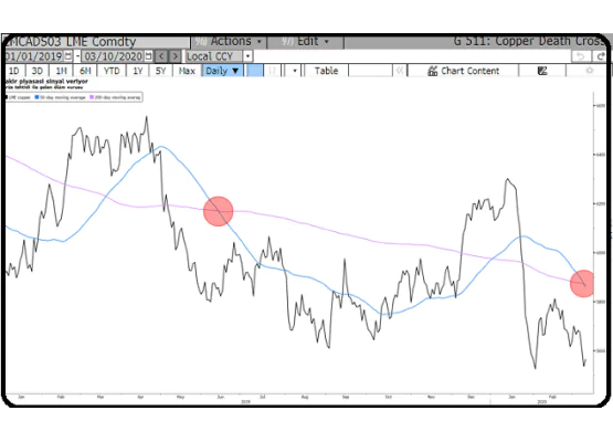 LME endüstriyel metal piyasasındaki fiyat hareketleri küresel ekonomik büyümeye ilişkin beklentileri yansıtması açısında son derece önemli. Piyasada işlem hacminin oluştuğu yer Londra Metal Borsası son dönemde Sangay Metal Piyasası da LME ile beraber takip ediliyor. Coronovirüs salgını sonrasında Çin'de azalan tüketim ile beraber stoklarda yükseliş olduğu görülüyor. Son haftalarda Virüs salgının diğer ülkelere de yayılması ile beraber tüm emtialarda olduğu gibi endüstriyel metal piyasasında da fiyatlarda sert düşüşler yaşandı. Ekonomik barometre olarak görülen bakırda LME de 3 ay vadeli bakır fiyatları 5400 dolar/ton seviyesine kadar geriledi. COMEX de hafta içinde görülen en düşük seviye 243 sent/lbs ve haftanın son işlem gününde limitli olmakla beraber yukarı yönlü bir tepki var. Öte yanda son sert geri çekilme ile teknik görünüm bozuldu. 50 günlük hareketli ortalamanın 200 günlük hareketli ortalamayı aşağı yönde kesmesi 'death cross' ile tekrar 200 günlük hareketli ortalama üzerine çıkılmadan yükselişler tepki olarak kalabilir. Kalıcı bir toparlanma Dünya ekonomik büyüme beklentisinde iyileşme ve virüs negatif etkinin geride kaldığı anlamına geldiğinden bakır fiyatları yakın takibe alınmalı.