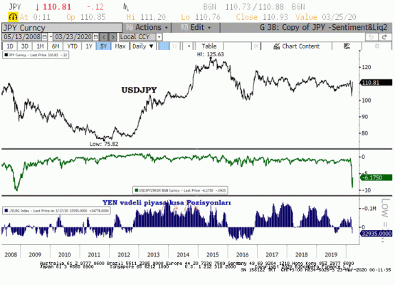 Dünya ticaretinin yüzde 65’i Amerikan Doları üzerinden ve dolar halen “rezerv para” ve bu taraftaki likidite sıkışıklığını gidermekte Amerikan Merkez Bankası’nın (FED) sorumluluğunda; banka önce haftalık yetmedi günlük swap line’lar ile en son 15 Merkez Bankası ile koordineli aksiyon aldı. Alınan onca önleme rağmen “Dolar Endeksi” (DXY) 103 endeks seviyesinden geri çekilmekte zorlanıyor. Bakalım bu hafta Dolar Endeksinde geri çekilme yaşanacak mı?