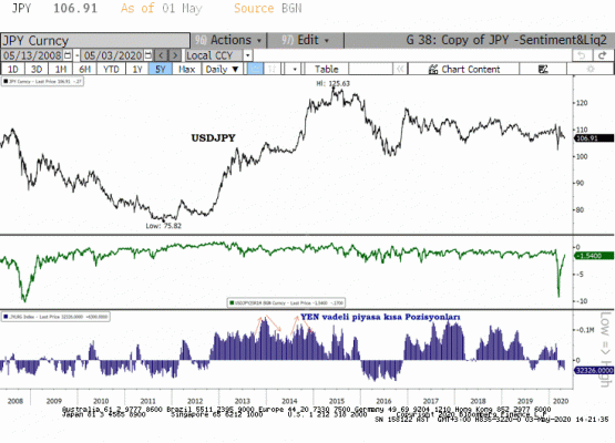 Son derinlik (COT) raporunda vadeli Japon Yeni net uzun pozisyon miktarı 6.300 kontrat yükseliş ile 32.326 kontrata yükseldi. Piyasada toplam açık poziyon miktarı da artan net uzun pozisyon miktarına paralel yükseldi. Piyasada fonlar yeni Japon Yeni uzun pozisyon açmışlar. 52 haftanın yüksek seviyesi 33.607 kontrat iken Japon Yeni tarafındaki pozisyonlanma piyasanın kısa vadede aşırı alım bölgesinde olduğunu gösteriyor. Japon Yeni sene başından bu yana Amerikan Doları'nda yükselişe en dayanıklı para birimi olarak çne çıktı. Güvenli liman olma özelliği bu dönemde Japon Yeni talebini artırdı. Covid-19 etkisini en hızlı geride bırakan ülkelerden biri olan Japonya bugünlerde ikinci dalga olabilir mi endişesini taşırken Yen üzerinde satıs baskısı limitli kalabilir. Nisan ayı boyunca USDJPY paritesinde piyasanın öngördüğü volatilite IV düşerken 25 delta RR dolar alım opsiyon talebinin arttığını gösteriyor. Covid-19 etkisi ile finansal piyasaların artan dolar likidite ihtiyacı opsiyon piyassaına da dolar alım yönünde yansıdı. Bu dalga olmasa ve daha istikrarlı bir dolar talebi olsa idi Japon Yeninde yükseliş daha hızlı olabilirdi. Şimdilerde 93.710 seviyesinde olan Haziran vadeli Japon Yeni muhtemelen 97.00 sınırına yakın işlem görüyor olurdu. Buna rağmen bugünün koşulları ile vadeli Japon Yeni 93.350 desteği üzerinde kaldıkça 94.450 direncini deneyebilir.