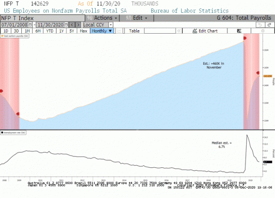 ABD tarafında Kasım ayı istihdamı tahminlerin nerede ise yarısı kadar artış gösterdi. Buna rağmen işsizlik oranının %6.7'e gerilemiş olması pozitifdi. İşgücü piyasası istatistiklerine göre U-3 olarak tanımlanan bu oran toplam işsiz sayısı/toplam sivil işgücü olarak hesaplanıyor. U-3 resmi işsizlik oranı iken U-6 işsizlik oranı göstergesi de istihdam piyasasındaki eğilimi takip için kullanılıyor. U-6 işsizlik oranı içinde toplam işsiz sayısına işsgücüne iş aramaktan vazgeçen kesim ile tam zamanlı iş bulamadıkları için yarı zamanlı çaşılan işgücünü de ekliyor. Kasım ayı U-6 isşizlik oranı %12.0 olarak gerçekleşti. Geçtiğimiz 25 senede ABD'de U-6 ve U-3 işsizlik oranı arasındaki fark %4-5 arasında gerçekleşti. Ekonominin toparlanmaya başlaması ile U-6/U-3 arasındaki fark Eylül ayında %4.9'a geriledi. Sonraki aylarda her iki işsizlik oranı göstergesi de gerilerken aradaki fark E kim ayında %5.0'e Kasım ayında %5.3'e yükseldi. Bu durum iş aramaktan yorulmış ve ya yarı zamanlı çalışan işgücü sayısındaki artış kaynaklı olduğundan 2021 yılında Amerika'da istihdam piyasasının zayıflayacağı yönünde ilk işaret olabilir.